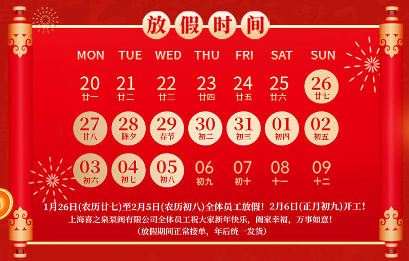 喜之泉春節放假通知