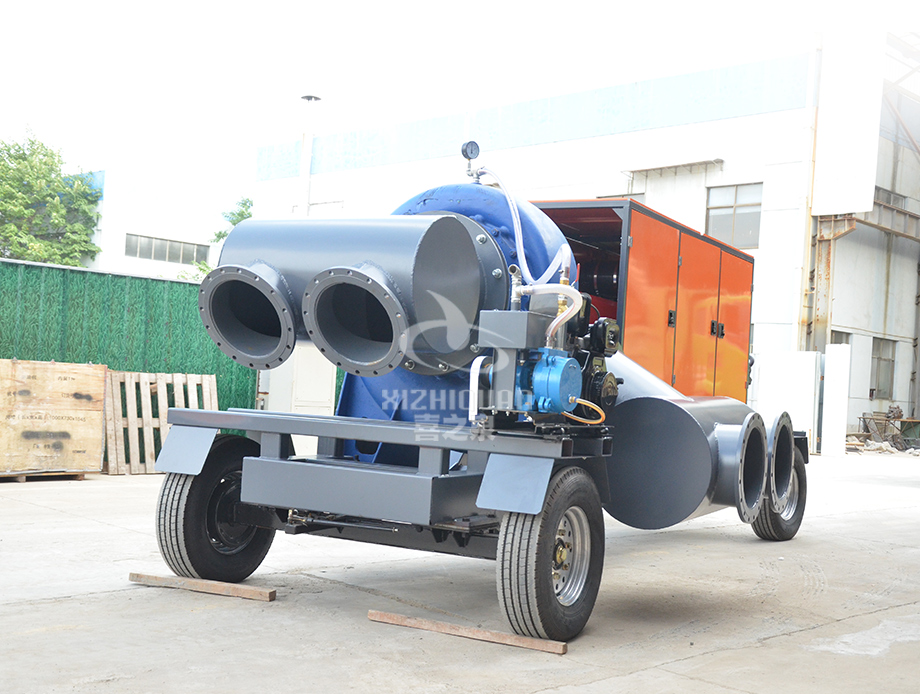 大流量移動(dòng)泵車(chē),是集自吸與無(wú)堵塞排污泵于一體的柴油機自吸泵機組,采用的是柴油機驅動(dòng)軸向回流外混式,通過(guò)泵及葉輪流道的獨特設計,使用時(shí)不需安裝底閥及灌引水。